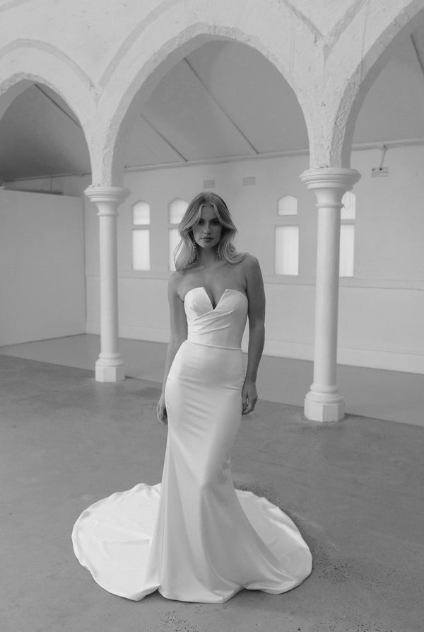 Evie Young is an Australian label of modern contemporary wedding gowns that embody synergy and femininity. Collectively fusing polar design elements and style, our collections are harmoniously representative of the women who wear them – beautifully diverse and supremely exceptional.Presenting bridal creations that are luxuriously unique to the industry, Evie Young creations feature in-house designed exclusive laces, earthen textural layers and innovative silhouettes. With a focus on the multi-faceted diversity of beauty and all that is feminine, our label is akin to a montage of individual love stories.